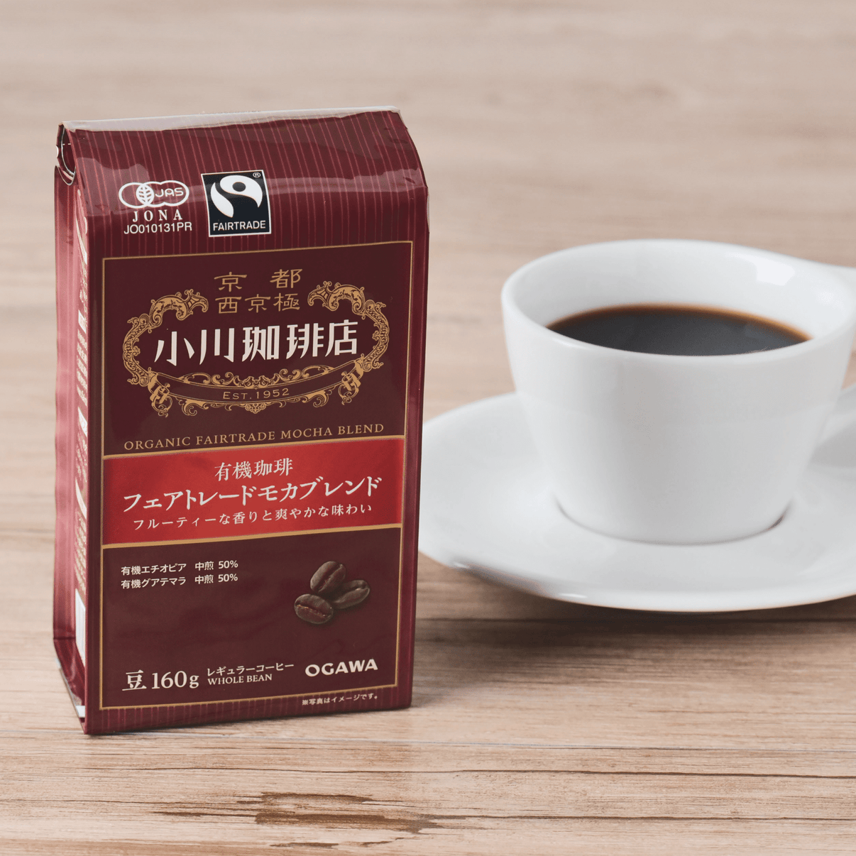 小川珈琲の「有機珈琲フェアトレードモカブレンド」は、厳選された高品質なコーヒー豆を使用し、持続可能な方法で生産されています。フルーティーな香りと爽やかな味わいが特徴です。